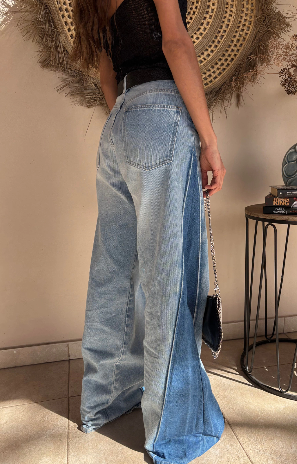 Pantalón mega wide, en denim rígido bicolor. Tiro alto. Detalle en laterales, denim desteñido. Un básico con muchísima onda <3